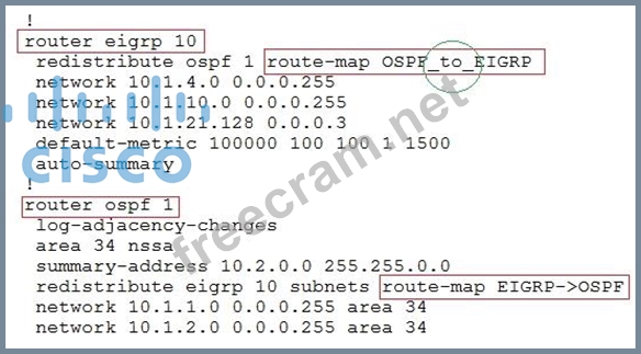 7. Change required: On R4, in the redistribution of EIGRP routing protocol, we need to change name of route-map to resolve the issue. It references route-map OSPF_to_EIGRP but the actual route map is called OSPF->EIGRP.