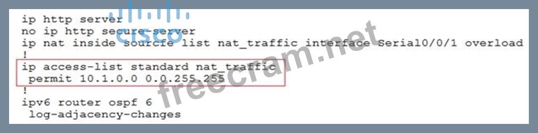 From above snapshot we are able to see that IP needs to be PAT to serial 0/0/1 to reach web server IP (209.65.200.241). But in access-list of NAT IP allowed IP is 10.1.0.0/16 is allowed & need 10.2.0.0 /16 to