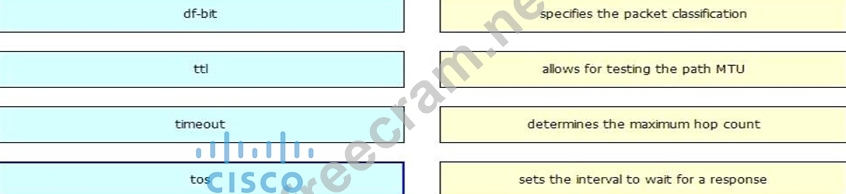 Drag the ping and traceroute extended command from the left onto the corresponding purpose on the right.