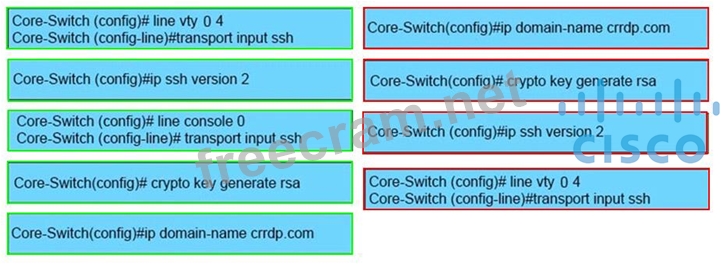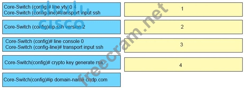 Drag the SSH configuration commands in order from the left onto the correct sequence number on the right. Not all commands are used.