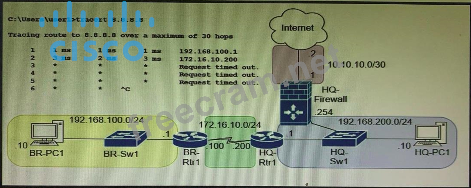 Question 8: (Exhibit) Refer to the exhibit. BR-PC1 (192.168.100.10) cann...