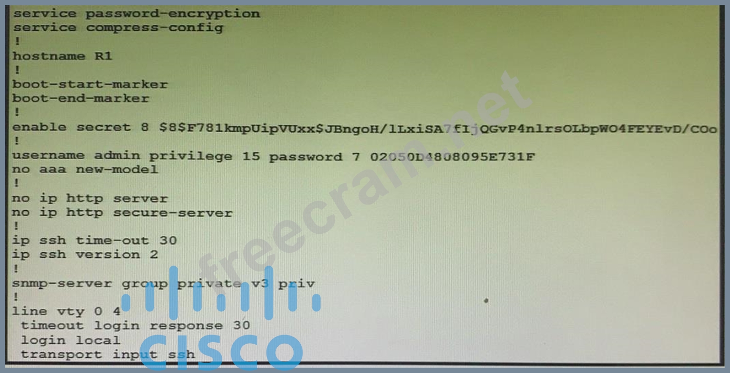 Refer to the exhibit. Which hashing method is being used for the enable secret?