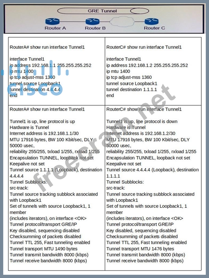 Question 41: You want to troubleshoot a GRE tunnel that is configured wit...