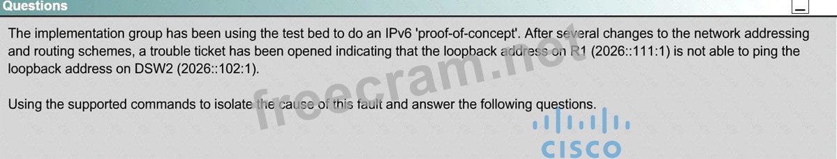 Recently the implementation group has been using the test bed to do a 'proof-of-concept' on several implementations. This involved changing the configuration on one or more of the devices. You will be presented with a series of trouble tickets related to issues introduced during these configurations.
