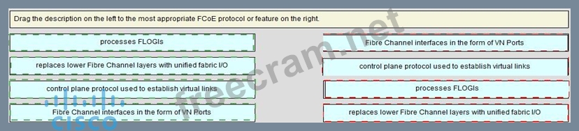 Drag the description on the left to the most appropriate FCoE protocol or feature on the right.
