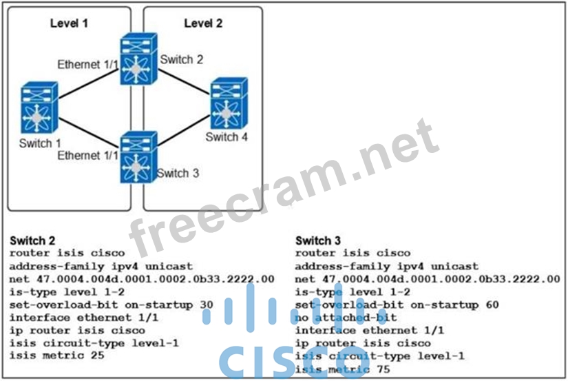 Refer to the exhibit. How does Switch 1 route traffic to the Level 2 network?