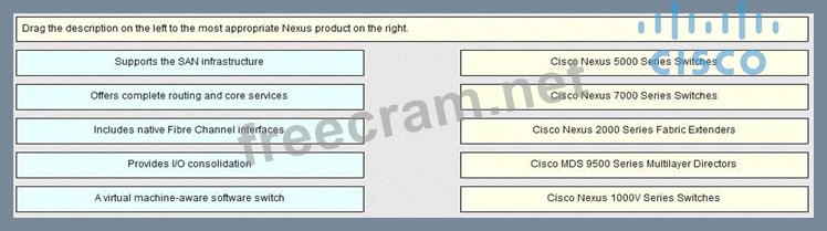Drag the description on the left to the most appropriate Nexus product on the right.