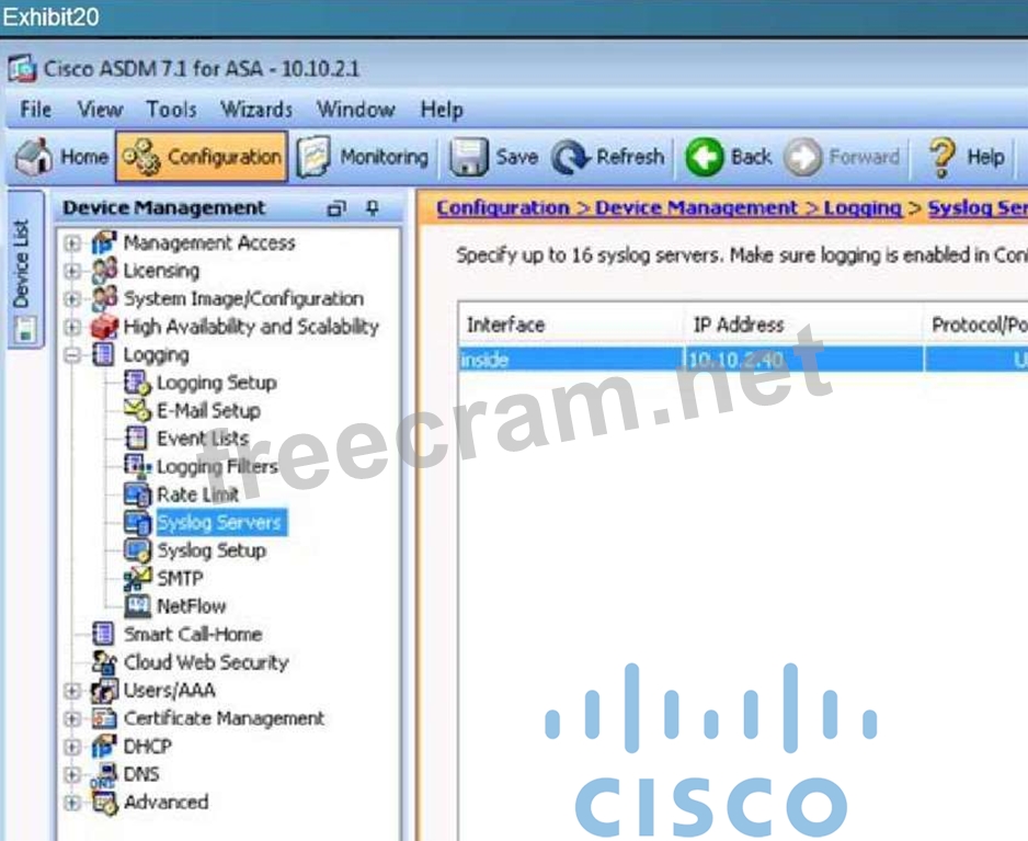 Question 139: (Exhibit) According to the logging configuration on the Cisc...