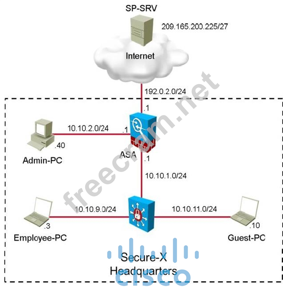 You are a network security engineer for the Secure-X network. You have been tasked with implementing dynamic network object NAT with PAT on a Cisco ASA. You must configure the Cisco ASA such that the source IP addresses of all internal hosts are translated to a single IP address (using different ports) when the internal hosts access the Internet.