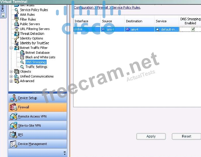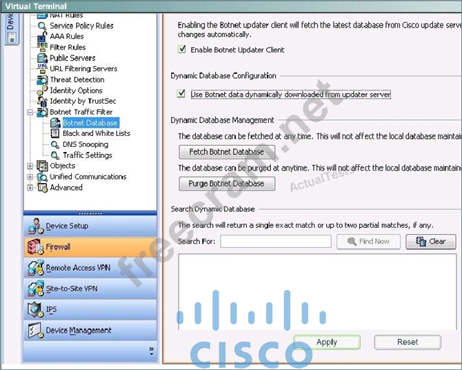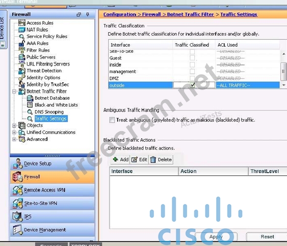 The CSO has tasked you with enable Botnet traffic filter on the Cisco ASA to detect and deny further connection attempts from infected PCs to malware destinations. You are also required to test your configurations by initiating connections through the Cisco ASA and then display and observe the Real- Time Log Viewer in ASDM.