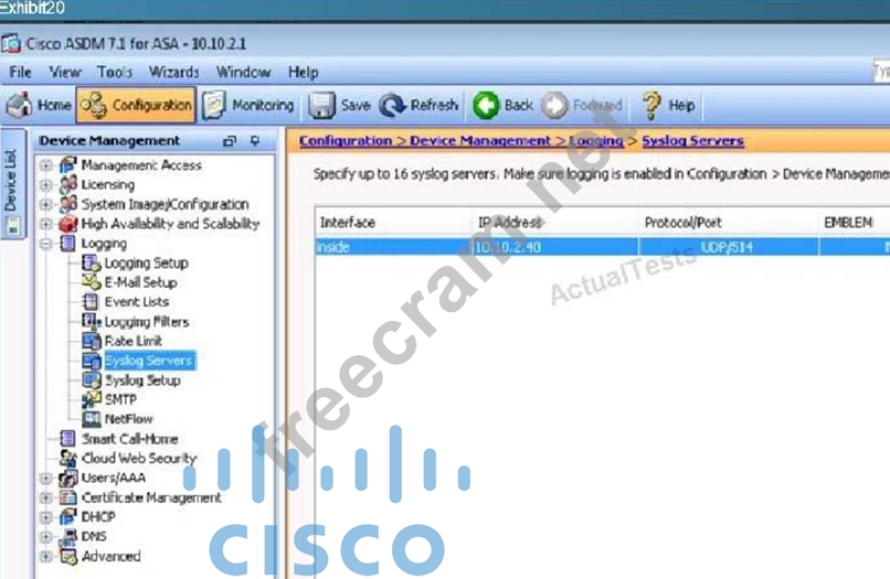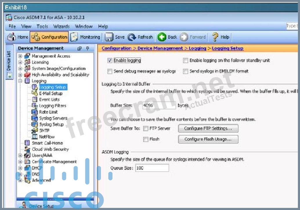 Question 75: (Exhibit) According to the logging configuration on the Cisc...