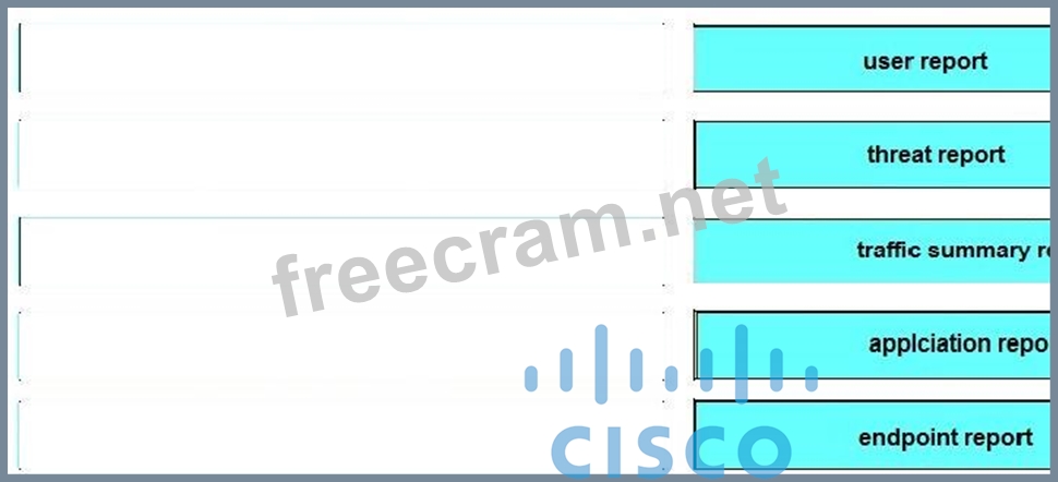 Drag and drop the Cisco Prime Security Manager available reports on the left onto the correct report examples on the right.