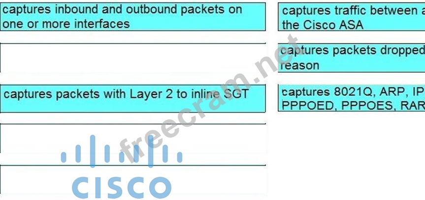 Drag and drop the function on the left onto the matching packet capture configuration types on th right. Not all options are used.