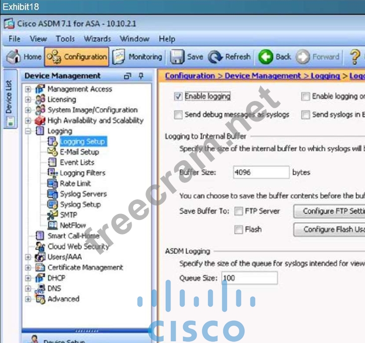 Question 156: (Exhibit) According to the logging configuration on the Cisc...