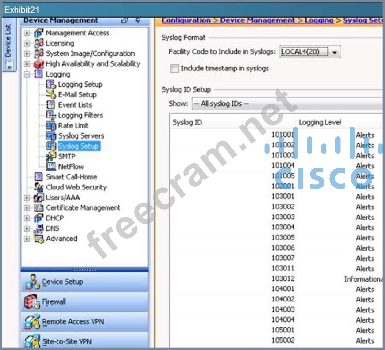 Question 116: At which firewall severity level will debugs appear on a Cis...