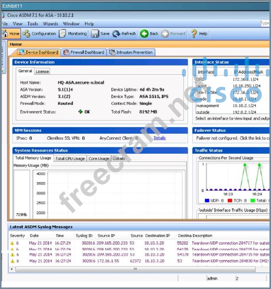 Question 11: (Exhibit) Which statement about how the Cisco ASA supports S...