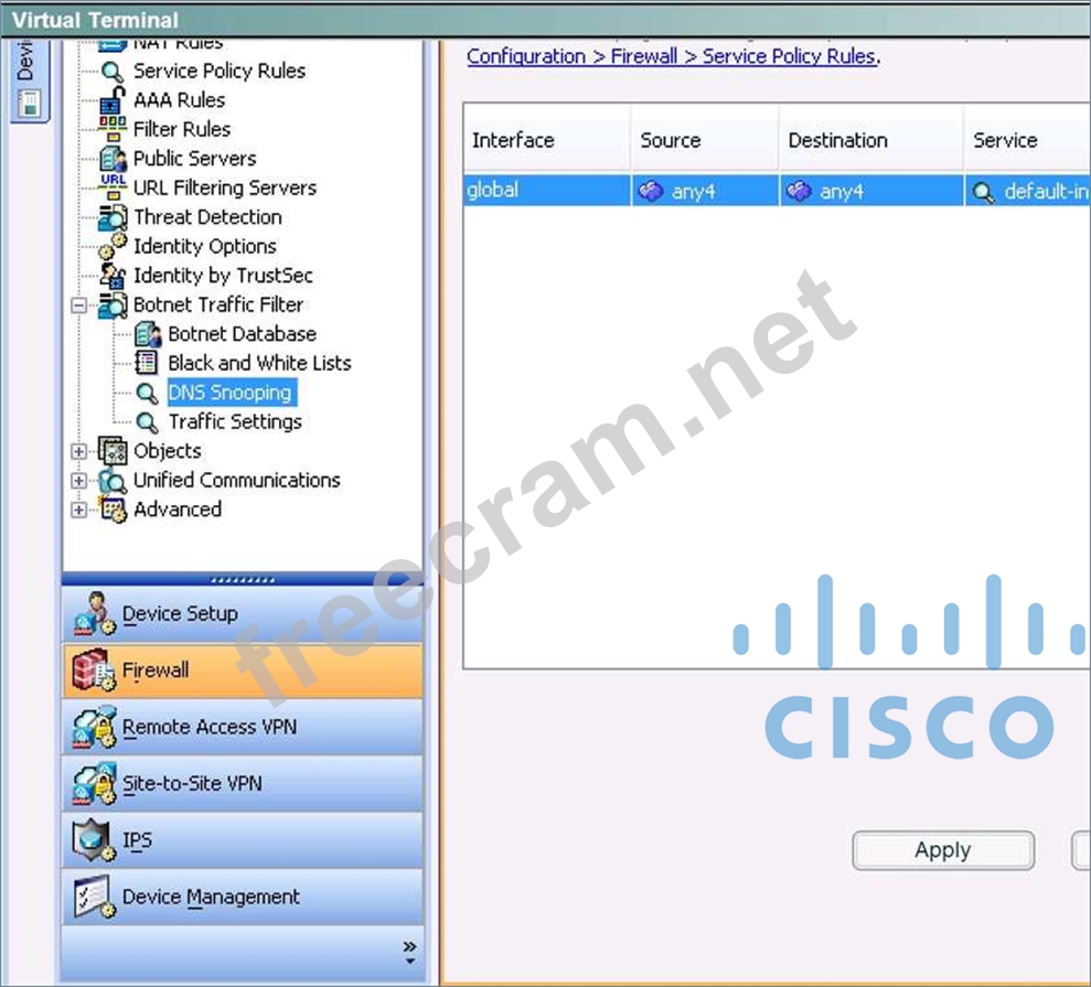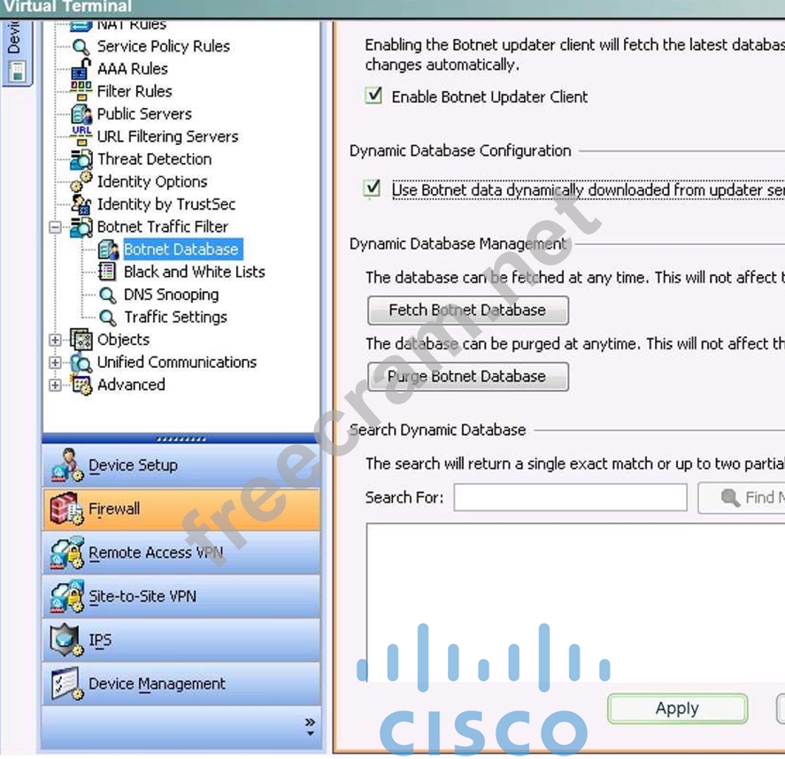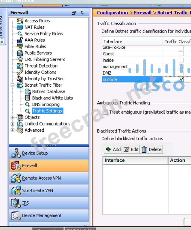 The CSO has tasked you with enable Botnet traffic filter on the Cisco ASA to detect and deny further connection attempts from infected PCs to malware destinations. You are also required to test your configurations by initiating connections through the Cisco ASA and then display and observe the Real- Time Log Viewer in ASDM.