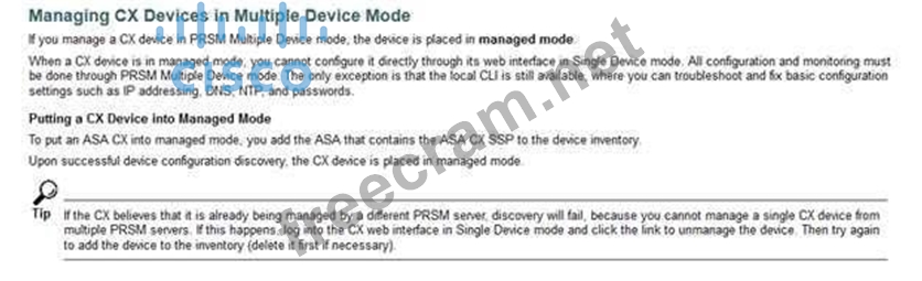 Question 71: When a Cisco ASA CX module is managed by Cisco Prime Securit...