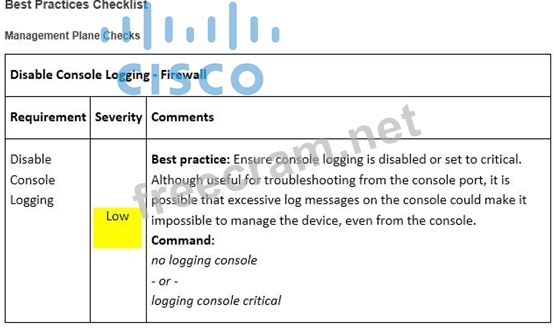 Question 116: At which firewall severity level will debugs appear on a Cis...