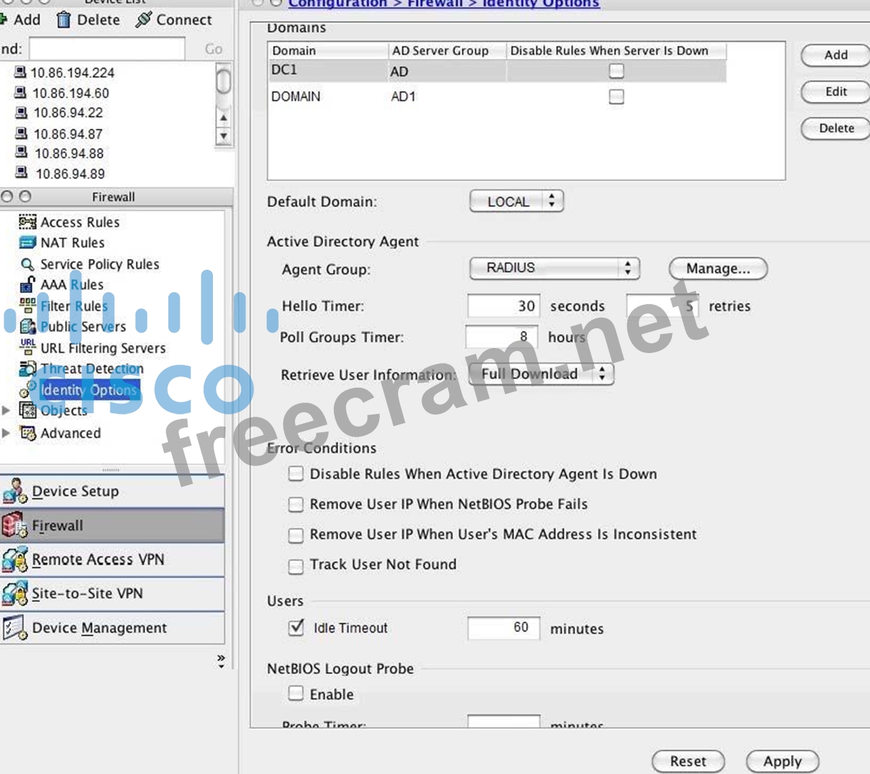 Refer to the exhibit. An engineer has configured identify options on an ASA using ASDM. Which domain is used for a user who does not have an explicitly configured domain?