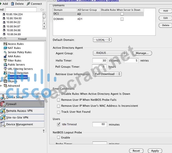 Refer to the exhibit. An engineer has configured identify options on an ASA using ASDM. Which domain is used for a user who does not have an explicitly configured domain?
