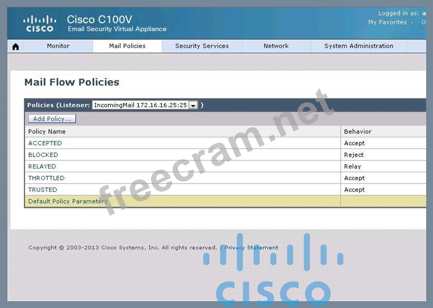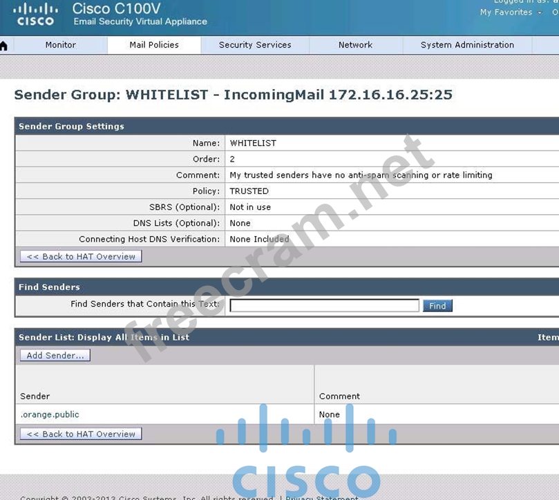 Question 38: Which Cisco ESA predefined sender group uses parameter-match...