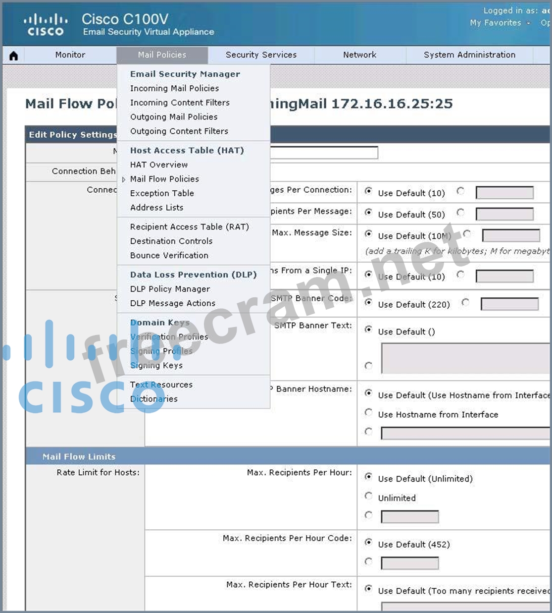 Question 188: Refer to the exhibit. (Exhibit) What Cisco ESA CLI command g...