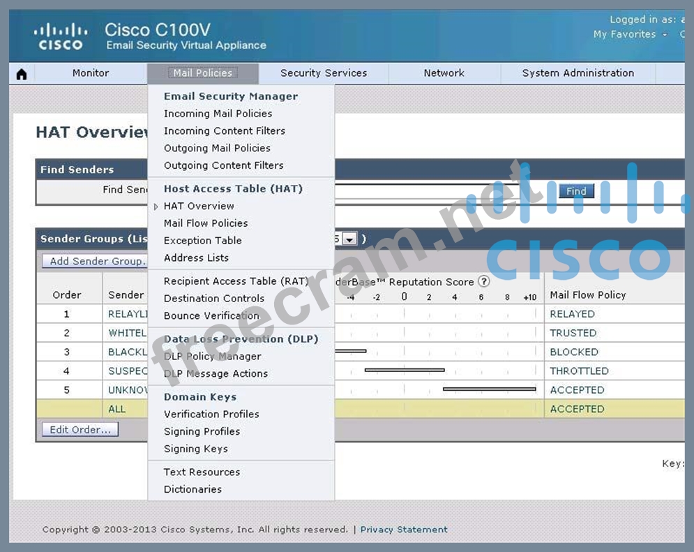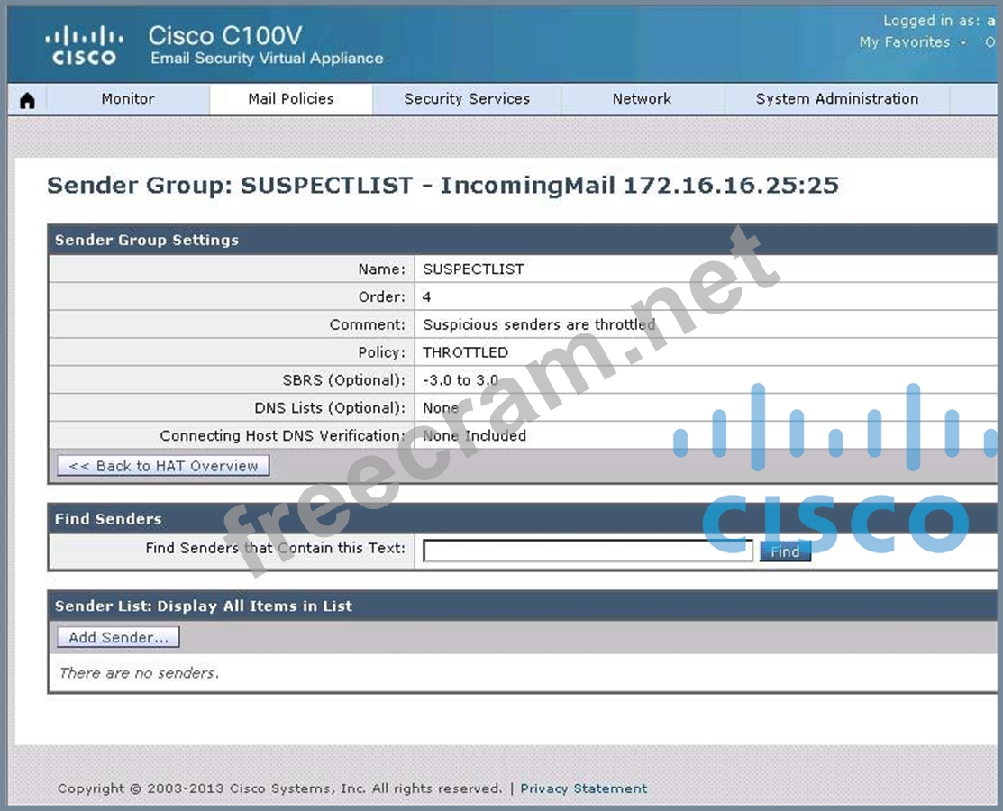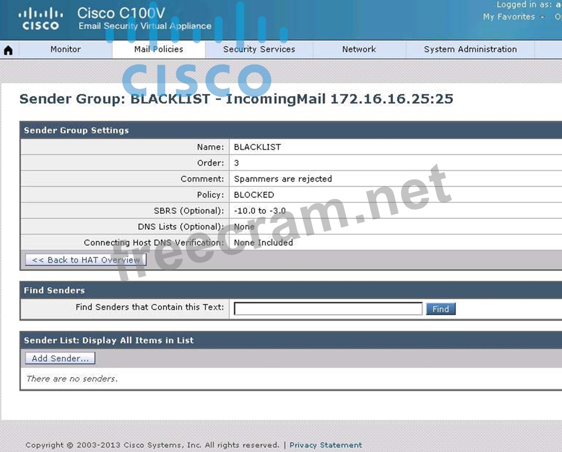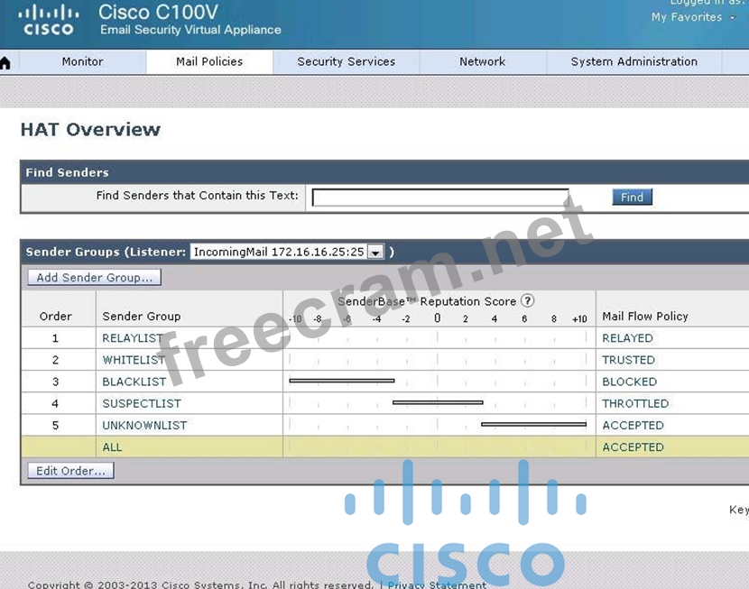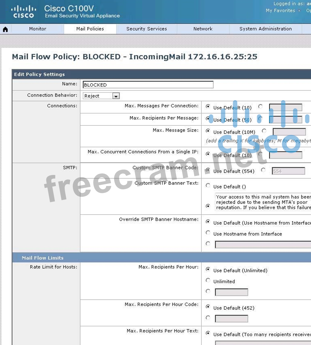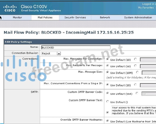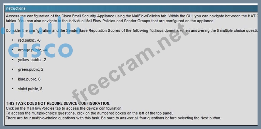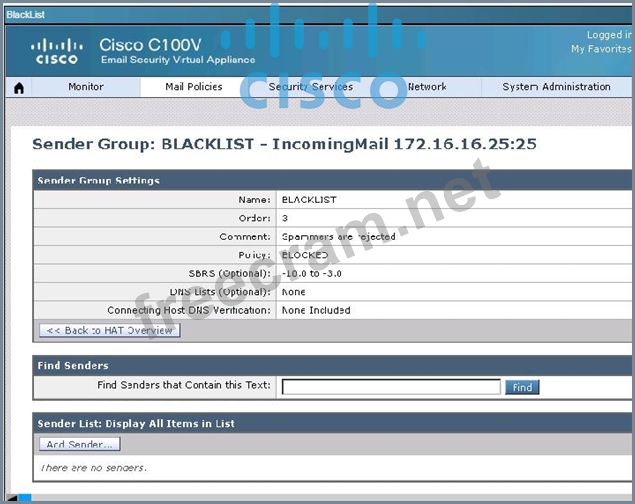 Question 211: When you configure the Cisco ESA to perform blacklisting, wh...