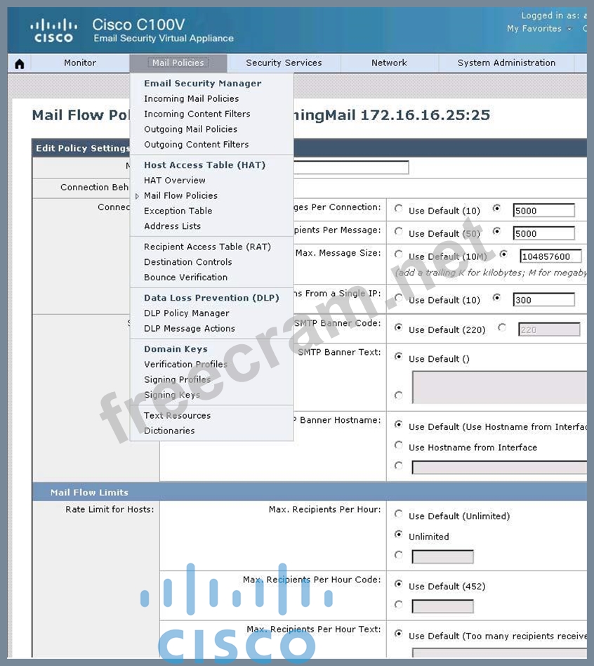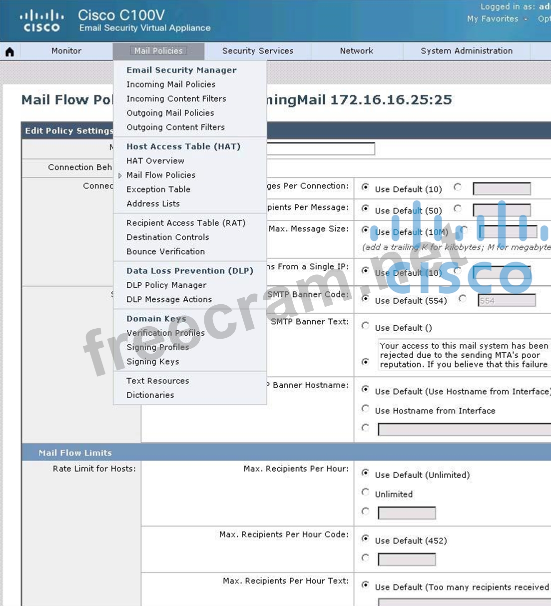 Question 231: (Exhibit) The Cisco Email Security Appliance will reject mes...
