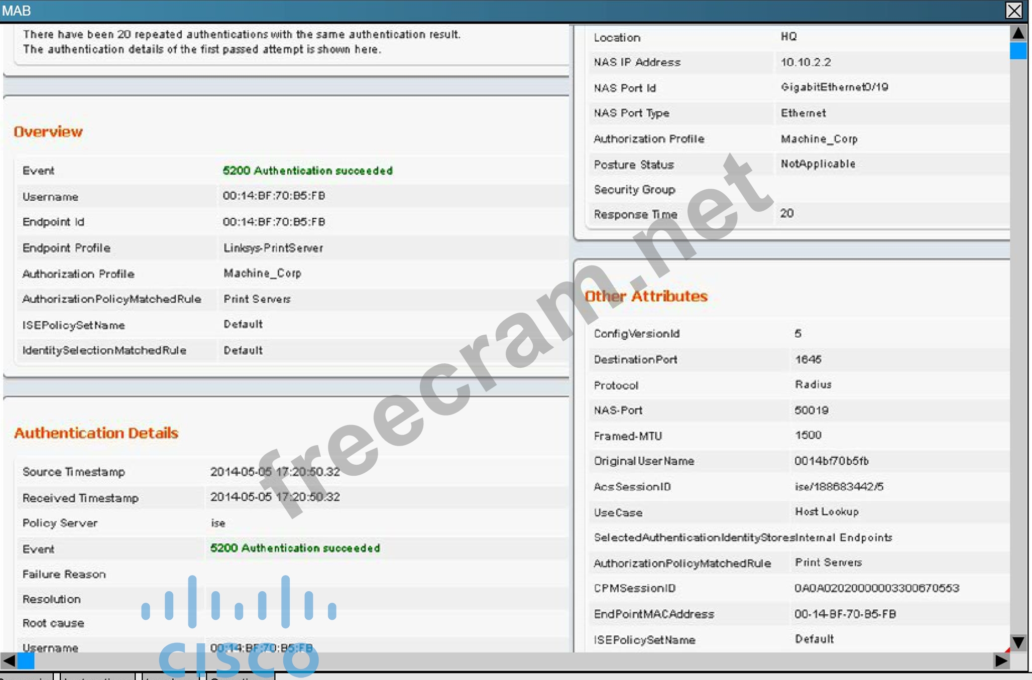In this simulation, you are task to examine the various authentication events using the ISE GUI. For example, you should see events like Authentication succeeded. Authentication failed and etc...
