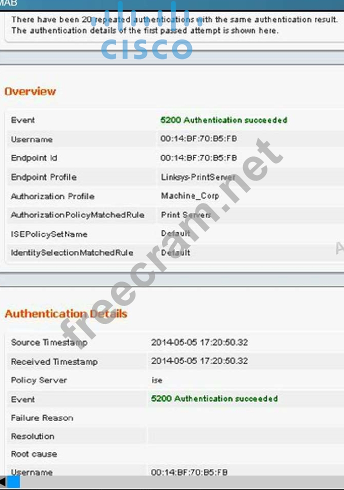 Question 140: You are troubleshooting wired 802.1X authentications and see...