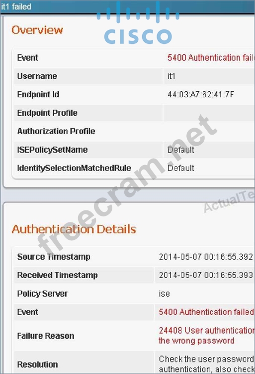 In this simulation, you are task to examine the various authentication events using the ISE GUI. For example, you should see events like Authentication succeeded. Authentication failed and etc...
