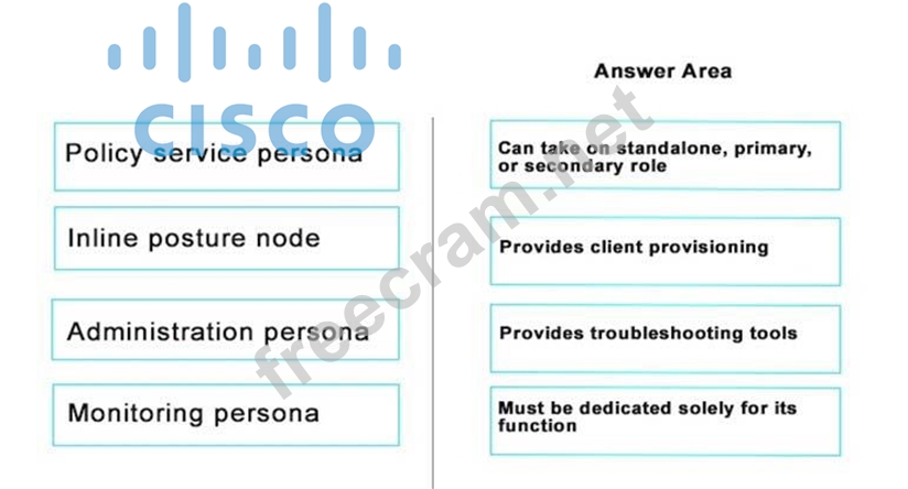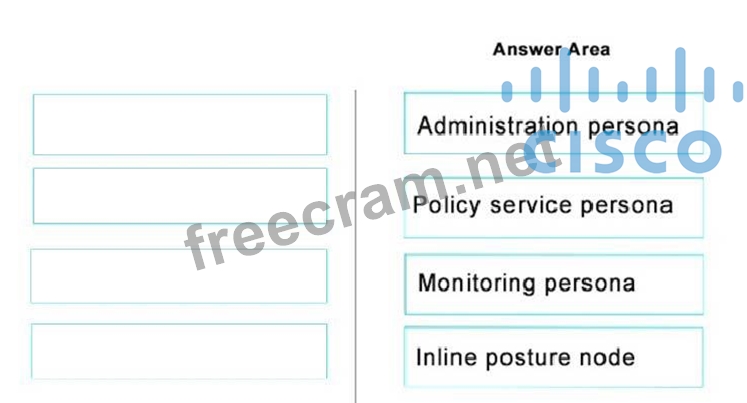 A security engineer is deploying Cisco ISE for a company's guest user services. Drag and drop the Cisco ISE persona on the left onto its function on the right.