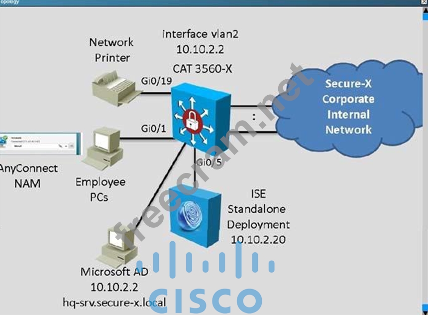 In this simulation, you will need to answer three multiple choice questions by examining the current ISE configurations using the ISE GUI.