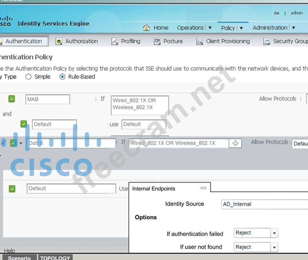 * Edit the existing Dot1X authentication policy to use the new AD_internal identity source sequence: