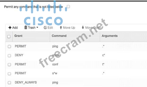 Refer to the exhibit. If a user with privilege 15 is matching this command set on Cisco ISE 2.0, which two commands can the user execute? (Choose three.)