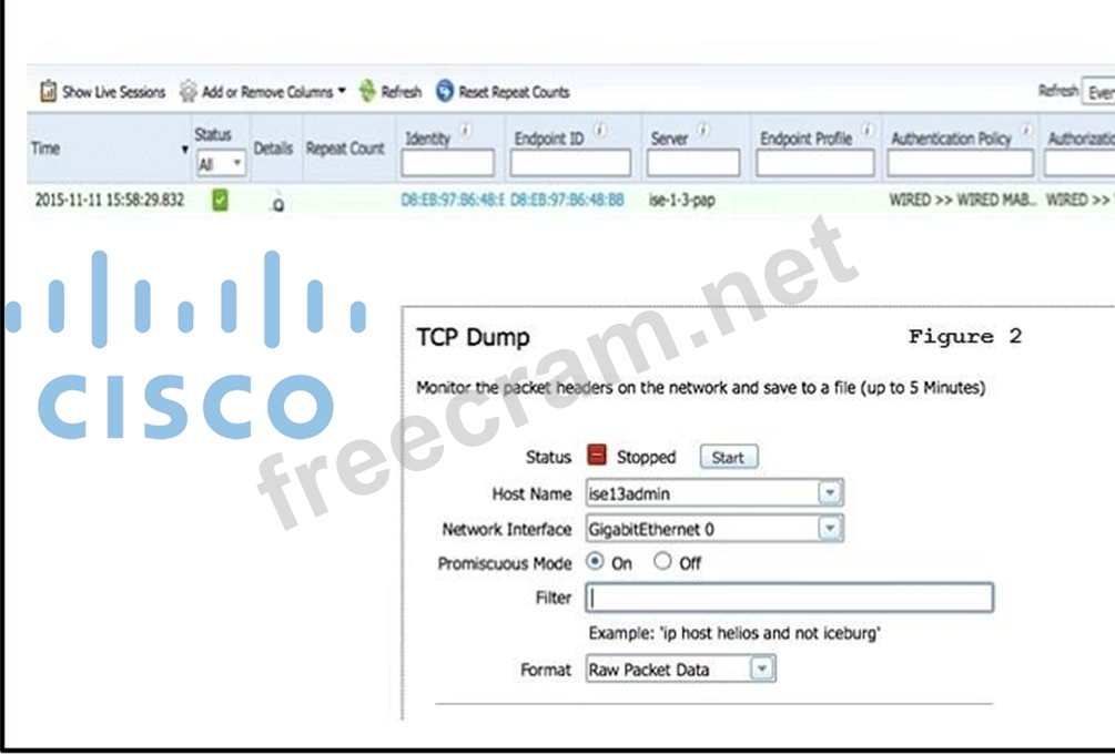 Refer to the Exhibit. In a distributed deployment of Cisco ISE, which column in Figure 1 is used to fill in the Host Name field in Figure 2 to collect captures on Cisco ISE while authenticating the specific endpoint?