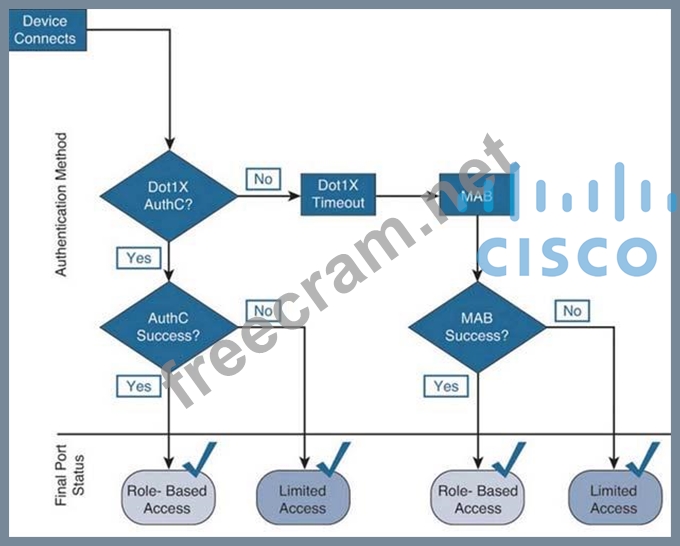 Question 34: Which two switchport commands enable MAB and allow non-802.1...