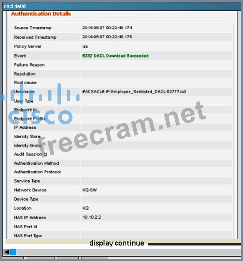 In this simulation, you are task to examine the various authentication events using the ISE GUI. For example, you should see events like Authentication succeeded, Authentication failed and etc...