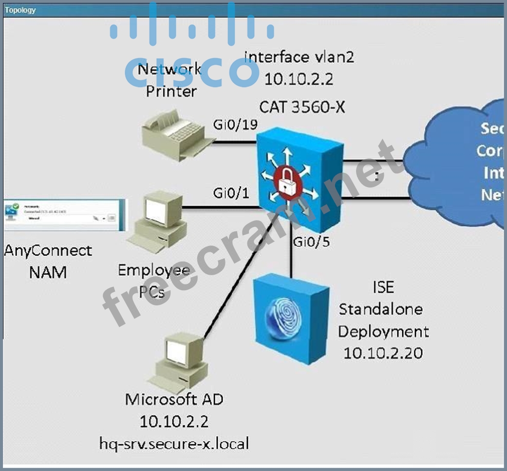In this simulation, you will need to answer three multiple choice questions by examining the current ISE configurations using the ISE GUI.