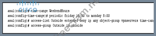 If the given configuration is applied to the object-group vpnservers, during which time period are external users able to connect?