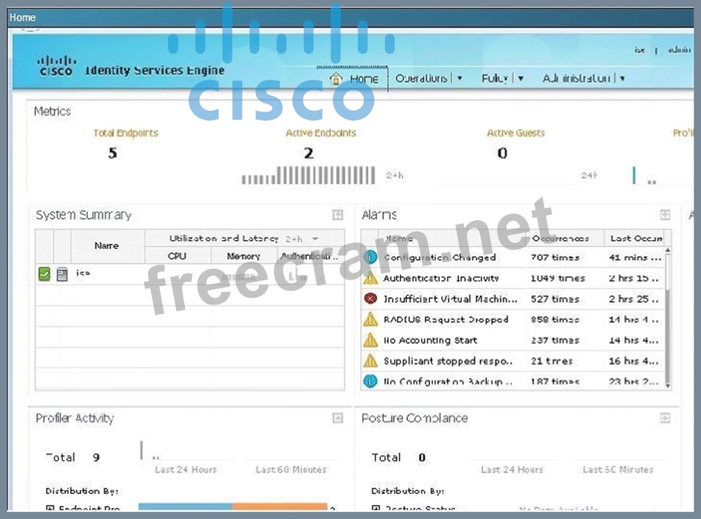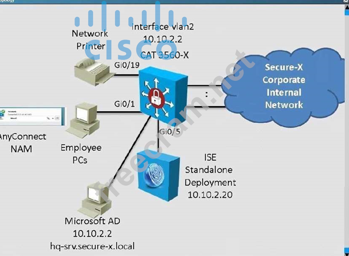 In this simulation, you are tasked to examine the various ISE GUI screens to determine the ISE current configurations to help isolate the problems. Based on the current ISE configurations, you will need to answer three multiple choice questions. To access the ISE GUI, click on the ISE icon in the topology diagram to access the ISE GUI. Not all the ISE GUI screen are operational in this simulation and some of the ISE GUI operations have been reduced in this simulation.
