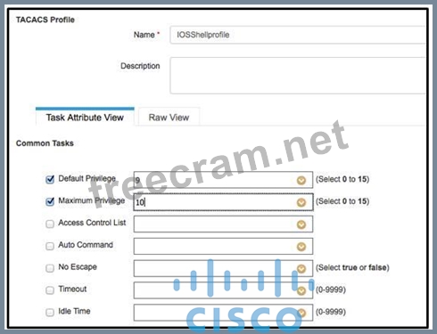 If the user matches the given TACACS+ profile on Cisco ISE, which command can the user enter from shell prompt on a Cisco switch?