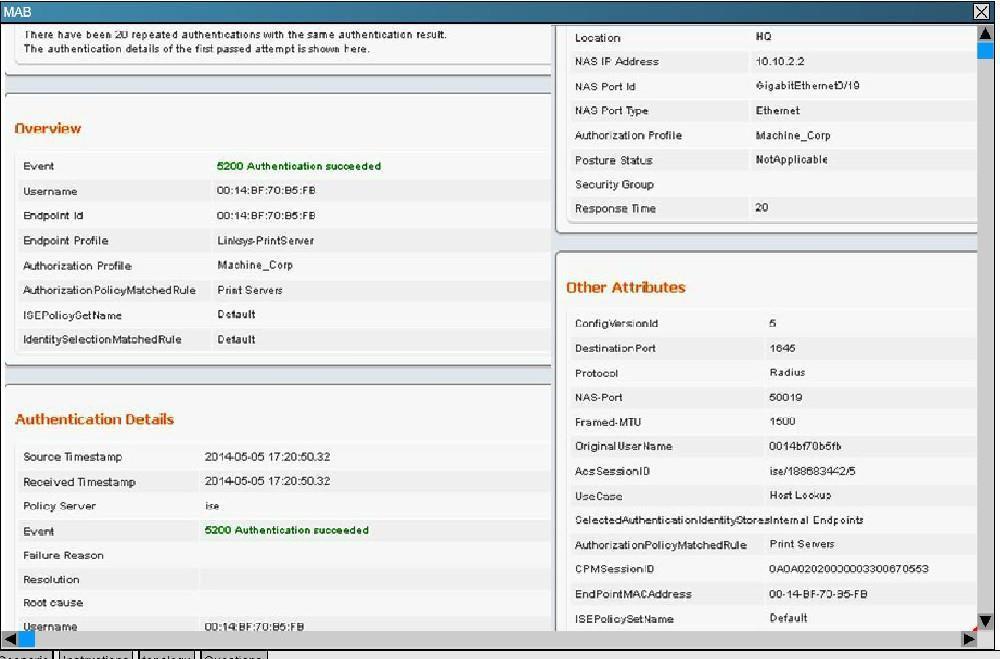 In this simulation, you are task to examine the various authentication events using the ISE GUI.