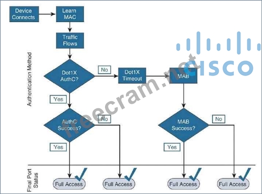 Question 32: Cisco 802.1X phasing enables flexible deployments through th...