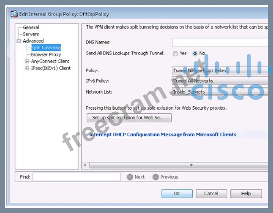 Question 17: Where is split-tunneling defined for remote access clients o...