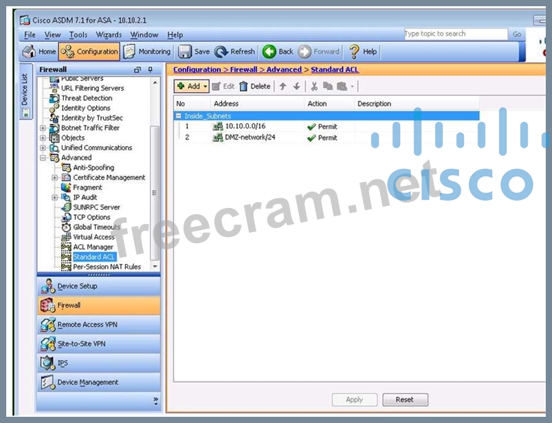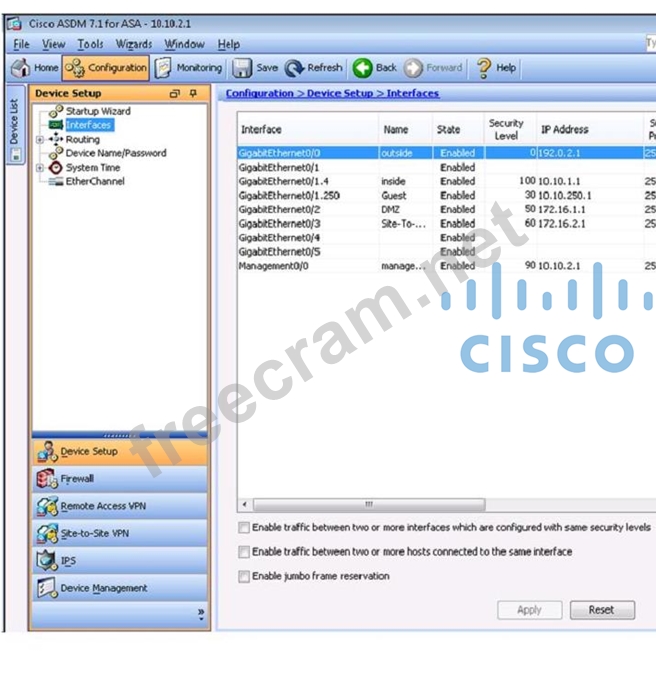 Question 186: (Exhibit) Based on the provided ASDM configuration for the r...