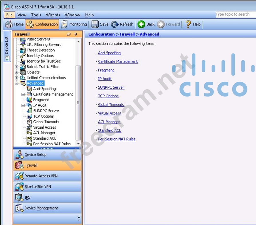 Question 248: Which Cisco ASA configuration is used to configure the TCP i...