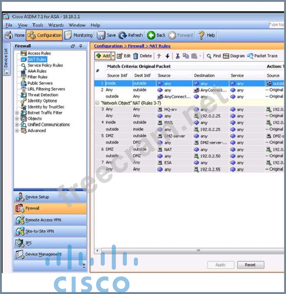 Question 170: (Exhibit) Based on the provided ASDM configuration for the r...