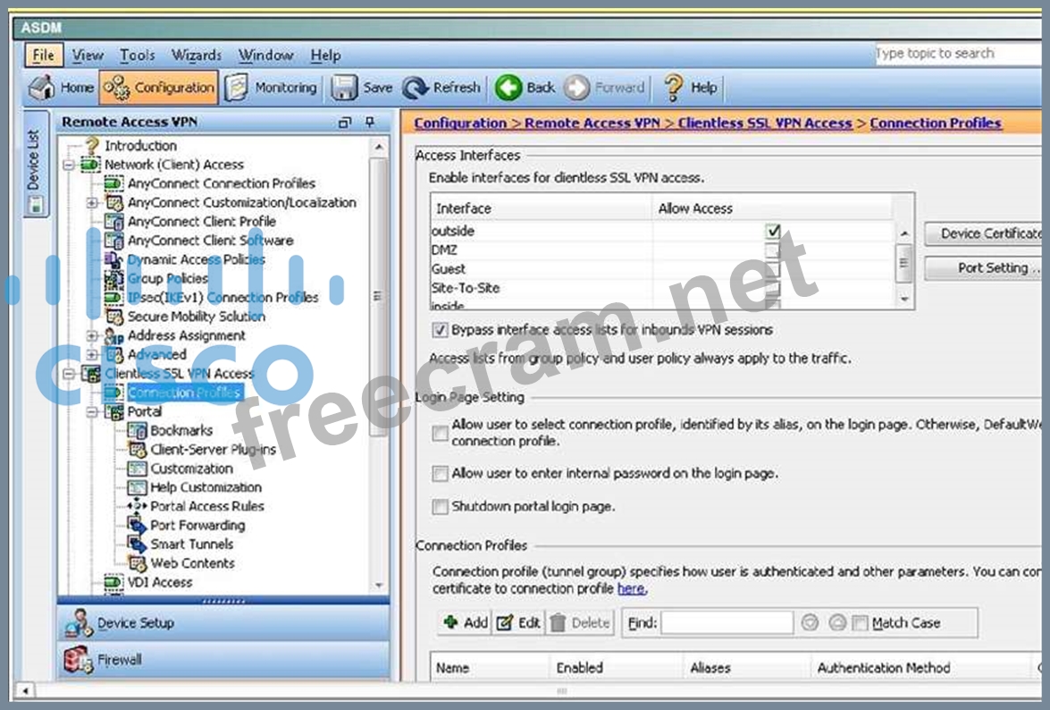 Question 49: Which Cisco ASDM option configures WebVPN access on a Cisco ...